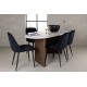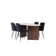 Spisebordssæt Gronvik med stole Night løfter din indretning med sit skandinaviske design og exceptionelle håndværk. Dette Spisebordssæt er det, du har drømt om, og det vil hurtigt blive midtpunktet i dit hjem! Vores ovale spisebord Gronvik har en uregelmæssig bordplade i lysegrå MDF med betonlook, som tilføjer en unik touch til din indretning. De tynde mørkebrune træpaneler, der støtter bordet, giver et elegant og stabilt præg. Med dette bord skaber du hurtigt et miljø, der udstråler stil og charme. Dimensioner: 180x75 cm. Her har vi kombineret spisebordet med sorte spisestole fra Night-serien. Med deres fuldt polstrede sæder i sort fløjlstof og matchende sorte stoleben tilføjer Night en følelse af luksus og eksklusivitet til din stue. Hver måltid bliver en fejring! En vidunderlig kombination af stil og komfort, enkelt og ligetil. Gronvik og Night sammen skaber en indbydende og modebevidst atmosfære, der får dit hjem til at føles som et eksklusivt sted. Uanset om det er en festlig middag eller en hyggelig brunch, vil Gronvik og Night gøre dig stolt af dit valg af Spisebordssæt!