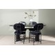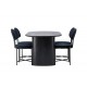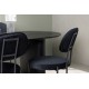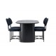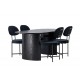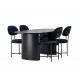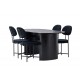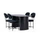 Moderne former og holdbare materialer! Det ovale spisebord Isolde i sort farve har et moderne design med en oval bordplade i MDF og en robust ramme, der giver et stabilt indtryk. Det levende materiale skaber en smuk bevægelse for øjet. Her med vores luksuriøse spisestole fra Stella-serien. Stolen har et trendy, skandinavisk design med rundt sæde og ryglæn i sort fløjlstof og minimalistiske ben i sort stål. Her får du det bedste af begge verdener! Bordets dimensioner: 180x75 cm.