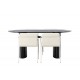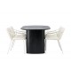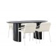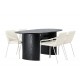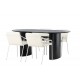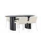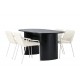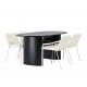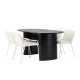Dekorer dit hjem med stil! Det ovale spisebord Isolde i sort farve har et moderne design med en oval bordplade i MDF og en robust ramme, der giver et solidt indtryk. Det levende materiale skaber en smuk bevægelse for øjet. Her sammen med sorte spisebordsstole fra serien Tvist. Stolen har en polstret sæde og et fuldt polstret design i beige PU med minimalistiske ben og integrerede armlæn i beige stål. Lige så trendy som det er komfortabelt! Bordets dimensioner: 180x75 cm.
