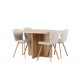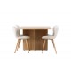 Et elegant Spisebordssæt til det moderne hjem, der fremhæver naturlige materialer på bedste vis! Vores træfarvede spisebord Leo er en imponerende kombination af funktionalitet og stil. Lavet af robust egetræsfarvet MDF, har dette bord en firkantet bordplade og et krydset træstel, der giver både stabilitet og karakter. Med sin kompakte størrelse passer det lige godt i et mindre køkken eller stue. Bordets dimensioner: 100x100cm. Sammen med vores beige spisestole Lilja, bliver dette Spisebordssæt komplet. Denne stol er en drøm med sit lyse beige polyesterstof, som tilføjer en luksuriøs følelse til dit interiør. Det fuldt polstrede sæde tilbyder en blød og behagelig oplevelse, og stolens ben er lavet af smukt egetræ med et fladt og let udfladet design for ekstra stabilitet og stil. Med dette firkantede træsæt bliver hvert måltid komfortabelt og behageligt. Skab en indbydende og moderne atmosfære i dit hjem - her får du alt, hvad du har brug for!