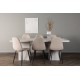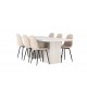 Skab en tidløs indretning med dette elegante Spisebordssæt - Komfort og design i perfekt harmoni! Vores robuste spisebord Olga har en hvidvasket finish og et slankt skandinavisk design. Den rektangulære bordplade lavet af MDF udstråler elegance og skaber en frisk atmosfære i dit hjem. Men skønheden ligger ikke kun i udseendet - dette spisebord er også praktisk med sine to robuste, blokformede bordben lavet af samme materiale. Dimensioner på bordet: 200x75cm. Her kompletteres spisebordet på en moderne måde med vores klassiske stole fra Polar-serien. Polar-stolene har et lige nordisk design og er polstret i et smukt beige boucléstof. Den afrundede ryglæn og sæde er generøst polstret, hvilket giver en herlig følelse af komfort. Stolebenene er lavet af sort pulverlakeret metal, hvilket tilføjer et moderne touch til det skandinaviske design. Med Olga spisebordet og Polar-stolene kan du skabe en indbydende atmosfære, hvor du og dine kære kan nyde lange og mindeværdige øjeblikke ved spisebordet. Glem kompromiser mellem komfort og design - her får du begge dele i perfekt harmoni!