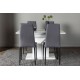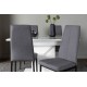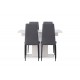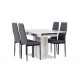 Velkommen hjem til et storslået Spisebordssæt, der tilpasser sig dine behov og skaber behagelige måltider fremover! Vores hvide spisebord, med et unikt design fra Pluto-serien, er den perfekte kombination af stil og funktionalitet. Bordpladen, lavet af høj kvalitet MDF-materiale, er prydet med en glasoverflade. Den robuste og centralt placerede base giver bordet stabilitet. Men det er ikke alt – dette spisebord er også udtrækkeligt, hvilket gør det fleksibelt nok til både små og store sammenkomster. Dimensioner af bordet: 120/160x90cm. For at komplementere det rektangulære spisebord har vi inkluderet stolene fra Petra-serien. Disse stole tilbyder ikke kun en høj ryg for optimal støtte, men har også en fuldt polstret sæde i gråt polyesterstof, hvilket tilføjer en flot detalje. De sorte metalben på stolene tilføjer et moderne touch og skaber en perfekt kontrast til spisebordets elegante design. Uanset om du nyder en afslappet familiemiddag eller en festlig sammenkomst med venner, vil du sidde komfortabelt og afslappet gennem hele måltidet!