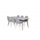 Det stilfulde spisebord Polar i klassisk stil er her kombineret med stole fra samme serie. Klassisk, simpelt og tidløst - en kombination der passer i mange husholdninger! Spisebordssættet er perfekt til dem, der ønsker et elegant og funktionelt spiseområde. Bordpladen er lavet af MDF og har en hvid finish, mens stolene er i en sofistikeret grå farve. Vær opmærksom på vedligeholdelse for at bevare møblernes smukke udseende.