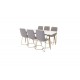 Det moderne spisebordssæt i serien Polar sammen med spisebordsstole i serien X-Dining. Skab noget stilfuldt og socialt med plads til god mad og socialt samvær! Bordpladen er lavet af MDF og er hvid, mens stolene kommer i en elegant grå og naturfarve. Perfekt til daglig brug og særlige lejligheder.