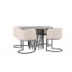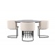 Dette spisebordssæt udstråler elegance og bekvemmelighed! Det runde spisebord Stone imponerer med sit modebevidste design og smukke brune MDF-bordplade med finer og en dekorativ cylindrisk base i sort metal. Her sammen med vores elegante spisebordsstole fra Simrishamn-serien. Stolen har et fuldt polstret sæde med en rundet ryg i beige TC-stof og en dekorativ, minimalistisk benstruktur i sort stål. Det skal føles luksuriøst at komme hjem! Bordets diameter: 120 cm.