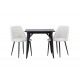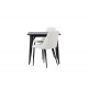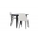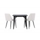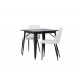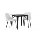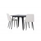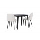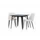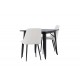 En charmerende Spisebordssæt til to! Vores kvadratiske spisebord Tempe har en kompakt størrelse og trendy, skandinavisk design. Lavet med en bordplade i sort MDF og bordben i sort metal. Her i en stilfuld kombination med hvide spisebordsstole fra serien Night. Stolen har et fuldt polstret sæde i hvid PU, der føles lige så luksuriøst som elegant, og benene er i sort stål. Sædet er også polstret for ekstra komfort. Her får du den perfekte kombination! Bordmål: 80x80 cm.