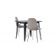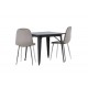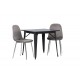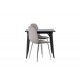 Indret med behagelige farver! Vores kvadratiske spisebord Tempe har en pæn størrelse og trendy, skandinavisk design. Lavet med en bordplade i sort MDF og bordben i sort metal. Her i en moderne kombination med grå spisestole fra Eva-serien. Stolen har et fuldt polstret design med ben i krommetal, en let rundet ryg og sæde i slankt gråt velourstof med blød polstring for ekstra komfort. Her får du en fløjlsagtig blikfang! Bordets dimensioner: 80x80cm.