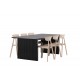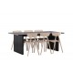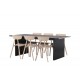 Et stilfuldt match, der står tidens prøve! Vail-spiseborde har lige nordiske former og er lavet af holdbart sort MDF - lige så stilfuldt som praktisk. Bordpladen er tynd i et rektangulært design og balancerer på to robuste træplader, der udgør understellet. Her i fremragende kombination med vores dejlige spisebordsstole fra Ursholmen-serien. Lavet af holdbar plast i en slank beige farve, der er nem at matche med andre møbler. Stolen har en pæn ryg, lidt dybere sæde og let udadgående ben i skandinavisk design. Skab et hyggeligt midtpunkt at samle dine kære ved!