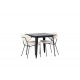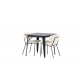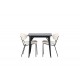 Et charmerende Spisebordssæt til to - perfekt til det lille køkken! Dette spisebord fra Tempe-serien har et klassisk, kvadratisk design og en tidløs sort farve. Bordpladen er i sort MDF, og bordbenene er i sort metal. Her i smagfuld kombination med to spisebordsstole fra Chico-serien. Stolene har et minimalistisk og komfortabelt design med ryg og sæde i hvid boucle-stof og en smal ramme i sort stål. Her får du en øjenfanger, der imponerer dine gæster!