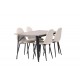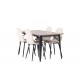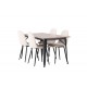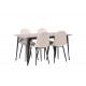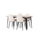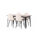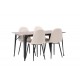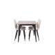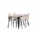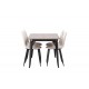 En vidunderlig kombination i varme nuancer! Spisebordet fra Tempe-serien har et elegant, skandinavisk design. Lavet med en firkantet bordplade i valnøddefarvet MDF og bordben i sort metal. Her sammen med vores dejlige spisebordsstole Polar. Denne spisebordsstol i et fuldt polstret design med en let afrundet ryg og sæde i velourstof og ben i sort pulverlakeret metal er lige så komfortabel, som den er iøjnefaldende. Den varme, beige farve er prikken over i'et i dette Spisebordssæt! Bordets dimensioner: 140x80 cm.