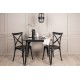 En klassisk Spisebordssæt til to! Dette spisebord fra Tempe-serien har et klassisk, firkantet design og en tidløs sort farve. Bordpladen er i sort MDF og bordbenene i sort metal. Her i en smagfuld kombination med to spisestole fra Crosett-serien. Stolene har et nostalgisk design med krydsryg og lige linjer, fuldstændig lavet af sort plastik. Her får du en pæn Spisebordssæt til at dekorere dit hjem med!