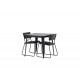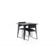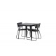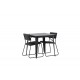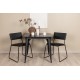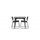 Et pænt Spisebordssæt, der passer perfekt i det mindre køkken! Dette spisebord fra Tempe-serien har et klassisk, firkantet design og en tidløs sort farve. Bordpladen er i sort MDF og benene i sort metal. Her i en smagfuld kombination med to spiseborde fra Kenth-serien. Stolene har et minimalistisk, moderne design, der skaber en luftig følelse i rummet. Ryg og sæde er i sort PU-læder og polyester, og de smalle stoleben er i jern. Skab en charmerende og moderne blikfanger i din stue!