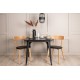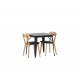 Indret dit hjem smart og stilfuldt! Dette spisebord fra Tempe-serien har et klassisk, firkantet design og en tidløs sort farve. Bordpladen er i sort MDF og bordbenene i sort metal. Her i perfekt kombination med vores smagfulde spisestole fra Sanjos-serien. Stolen tilhører Venture Home-kollektionen og har et dejligt design i farverne sort og naturtræ. Det bløde sæde er skum polstret for ekstra komfort og har et lækkert PU-læder i sort. Ryggen og benene er lavet af lyst træ og giver indtryk af et klassisk design. Sid komfortabelt!