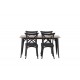 En Spisebordssæt, der kombinerer klassisk design og moderne former! Spisebordet fra Tempe-serien tilhører Venture Home kollektionen og har et iøjnefaldende, skandinavisk design. Lavet med en firkantet bordplade i sort MDF og bordben i sort metal. Sammen med spisebordsstole fra Crosett-serien. Stolene har et nostalgisk design med krydset ryg og lige linjer, konsekvent lavet af sort plastik. Her får du en stilfuld Spisebordssæt til at indrette dit hjem med!