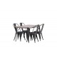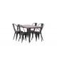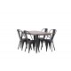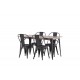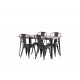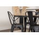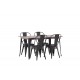En matchende Spisebordssæt fra Tempe-serien - designet helt i tråd med tidens trends! Spisebordet fra Tempe-serien tilhører Venture Home-kollektionen og har et iøjnefaldende, skandinavisk design. Lavet med en firkantet bordplade i sort MDF og bordben i sort metal. Her sammen med spiseborde fra samme serie. Stolen har let udadvendte ben, der støtter sædet og ryglænet i et stilfuldt design, alt sammen lavet af sort metal. Indret smart og stilfuldt!