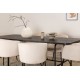 Vores populære spisebord Uno er lige så stilfuldt som tidløst! Bordet er rektangulært designet med let afrundede hjørner, en topplade i sort MDF med finér og elegante underben i sort metal. Her i perfekt kombination med 6 Berit spisebordsstole i beige fløjlsstof og stilfulde smalle stoleben i sort jern. Et Spisebordssæt med fokus på komfort og elegance!