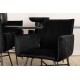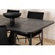 Oplev en perfekt balance mellem komfort og elegance med Uno Rektangulær Spisebordssæt. Dette sorte spisebord er rektangulært designet med let rundede hjørner, en topplade i sort MDF med finer og et stilfuldt understel i sort metal. Bordets dimensioner er: Længde: 200 cm, Bredde: 90 cm, Højde: 74 cm. Sættet inkluderer også fire Petra spisestole i sort fløjl med stoleben i jern. Stolens dimensioner er: Højde: 87 cm, sædehøjde: 48 cm, bredde: 57 cm, dybde: 60 cm. Stolene er designet med høj komfort, hvilket indbyder til lange hyggelige måltider sammen.