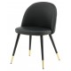 Velvet Spisebordsstol - En robust spisebordsstol i et detaljeret og luksuriøst design! Ryglænet er rundet og ligesom sædet blødt polstret i sort kunstlæder med dekorative stikninger. Benene er i sort pulverlakeret metal med benafslutning i messingfolie, som skaber et iøjnefaldende helhed. Let montering kræves. Skab en moderne blikfang i hjemmets hjerte! Plejeanvisning: Kunstlæder er godt at rengøre med en blød, fugtet bomuldsklud. Ved svære pletter kan der anvendes en fugtet bomuldsklud og et middel beregnet til rengøring af bycast & PU, prøv først på et ikke-synligt område, da nogle midler kan have forskellige sammensætninger.