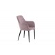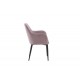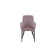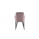 En nostalgisk manchester-stol går aldrig af mode! Denne spisebordsstol fra Komfort-serien er beklædt med lyserød velour, der skaber et moderne look til hjemmets hjerte. Benene er i sort pulverlakeret metal, og sædet med integrerede armlæn i grå manchester-stof giver en god siddekomfort. Dekorative syninger på indersiden af ryggen og armlænene tilføjer en flot detalje. Let samling er påkrævet. Plejevejledning: Brug tekstilspray til at imprægnere stoffet inden brug, det vil også gøre snavs og pletter lettere at fjerne i fremtiden. Fjern pletter med det samme, gnid ikke, men forsøg at duppe forsigtigt med en klud.