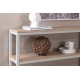 RISE, et elegant sidebord, der vil løfte din indretning til næste niveau! Brugsmulighederne er mange, og sidebordet fungerer perfekt som både en flot indretningsdetalje og til nem opbevaring. Der er to smarte hylder i naturfarvet MDF med askepapirlaminat, og rammen er i stilfuldt hvidt metal - en tidløs farvekombination, der gør bordet let at matche med resten af din indretning. Placer det i soveværelset, gangen eller stuen for en smart og stilfuld indretning! Dimensioner: 110x30x70 cm. Plejeråd: MDF-plader, der er malede eller lakerede, er følsomme over for ridser og skader. Vær derfor forsigtig med pladerne for at undgå dette. Overflader malet med lak med farvepigment eller maling har en pigmentering, der giver en ikke-dækkende gennemsigtig overflade.