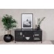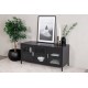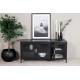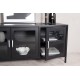 Acero TV-bord i pulverlakeret sort stål med industrielt design og tre døre i klart glas. Rammen er i pulverlakeret sort stål med sølvhåndtag og en aftagelig hylde. Dimensioner: Længde: 120 cm, bredde: 48 cm, højde: 58 cm. Let montering kræves. Perfekt til at tilføje en moderne touch til dit hjem.