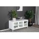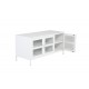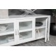 Acero TV Stand i pulverlakeret hvidt stål i industrielt design med tre døre i klart glas. Rammen er i pulverlakeret hvidt stål med sølvhåndtag og en aftagelig hylde. Mål: Længde: 80 cm, bredde: 43 cm, højde: 97 cm. Lettere samling er påkrævet.