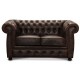 Sæderne er udstyret med posefjedre, som sikrer en komfortabel og støttende siddeoplevelse – selv ved længere tids brug. Den dybe knaplukning i ryggen og de klassiske rullede armlæn fuldender det elegante Chesterfield-look.